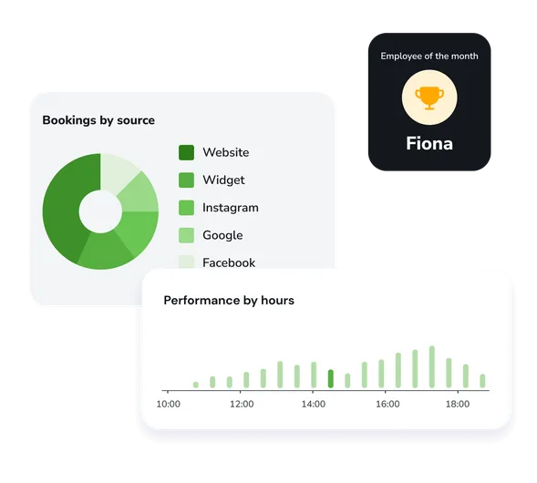 EasyWeek analytics includes detailed reports on bookings, customer sources, service popularity, staff performance, financial metrics and much more. You get a complete picture of how your business is running.